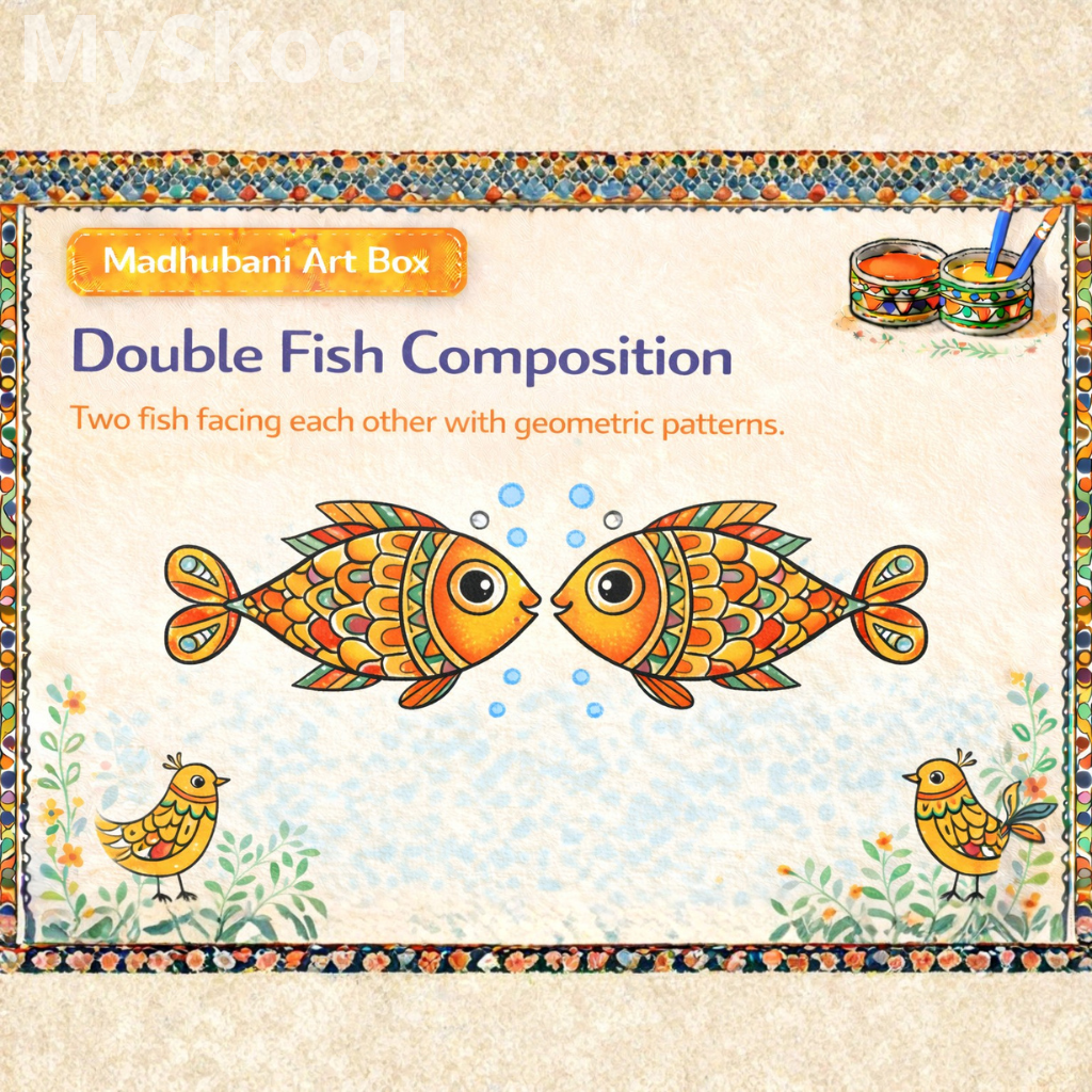 This activity introduces symmetry using two figures. It improves composition planning. Children learn pattern repetition. The activity builds patience. Cultural symbolism deepens.
