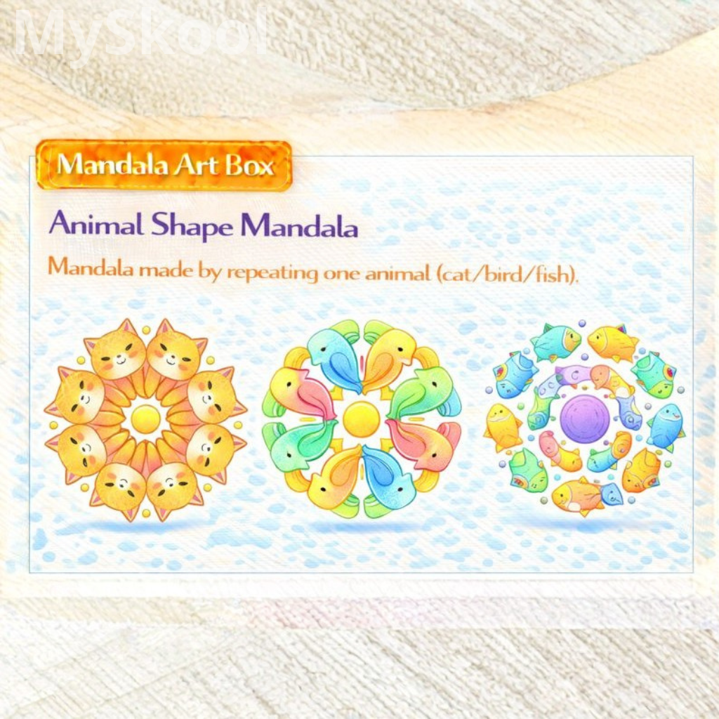 Children will create an animal mandala. They will repeat shapes evenly. Their symmetry skills will improve.